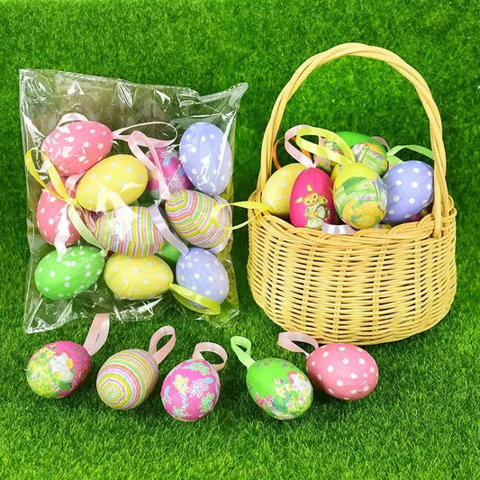 12-Piece Colorful Easter Egg Hanging Ornaments - Foam Rabbit Painted Eggs for Easter Party Décor, Home, and Kids' Gifts 2024
